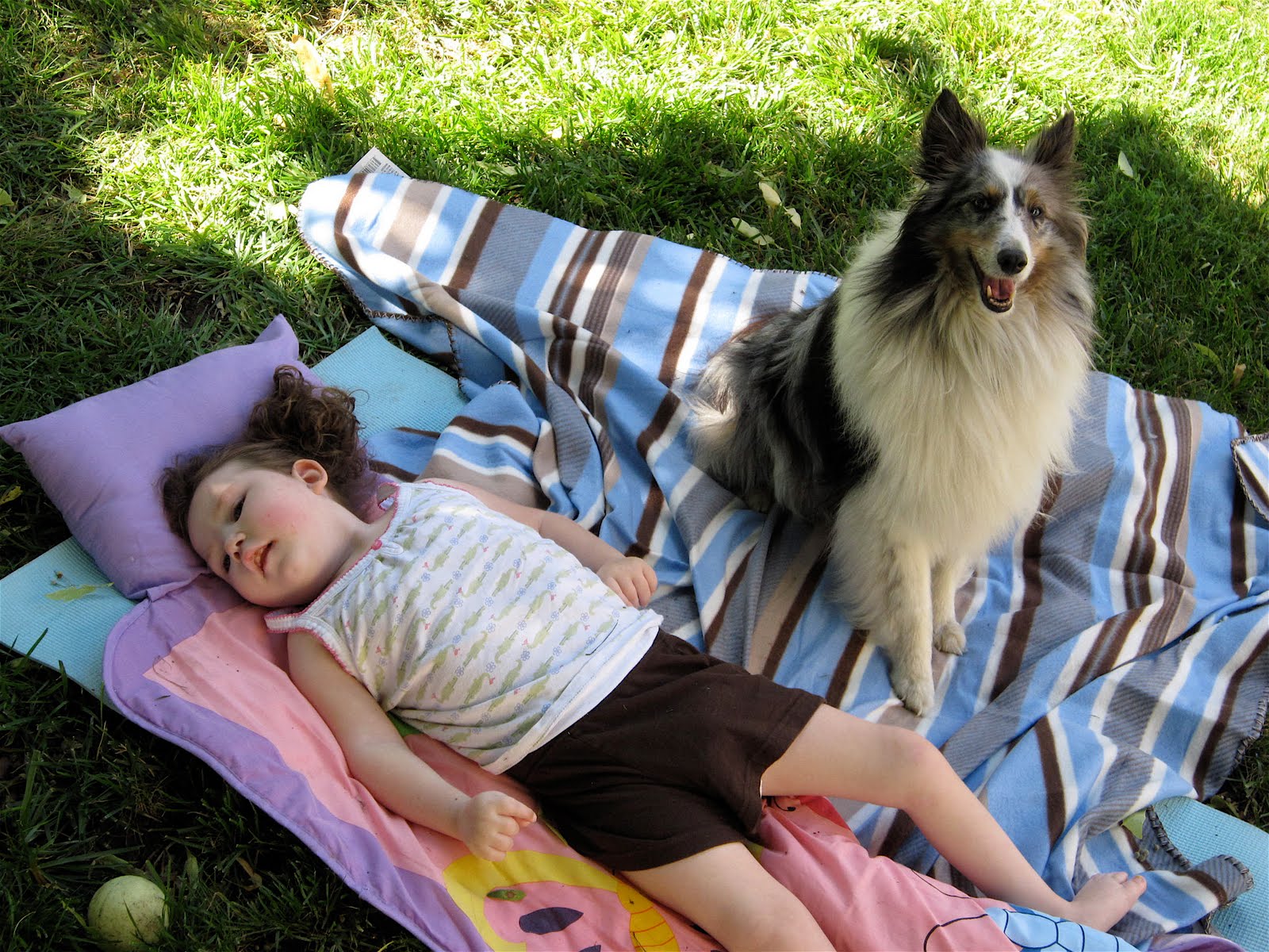 We have also been enjoying the weather. Blue has decided to be Quinn’s nurse maid, and as I’m working to pull weeds or water or tend to this our that outside, Blue tends to Quinn. It’s adorable! I’ve caught him sleeping on the job, but I think I’ll keep him.