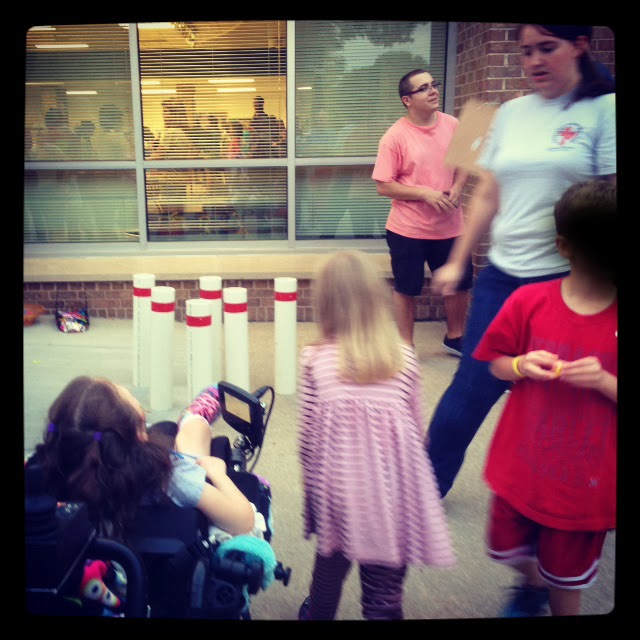 bowling! It's fun to see how much little D helps Quinn. D would play the game, then she would help Quinn play! I tell you again, God works in great ways, there is no way I could have prayed to have her love Quinn the way she does. Our little guy loves her too, but is not into helping her in that way.